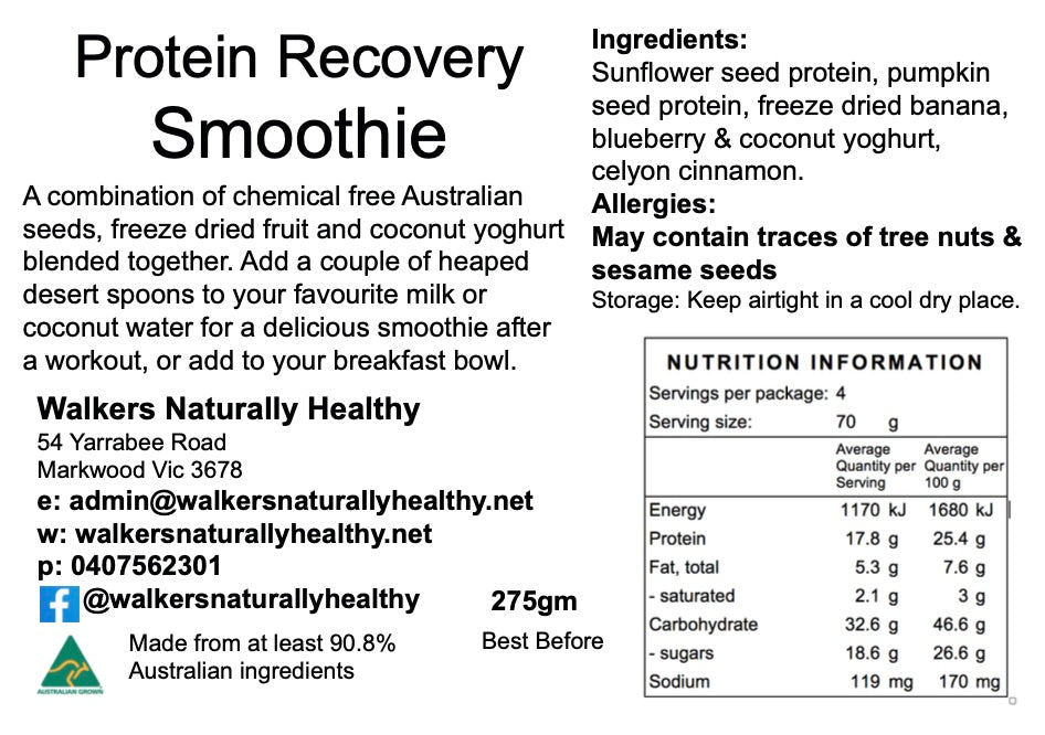 Fuel your body with the goodness it deserves! OurVegan Protein Recovery Smoothie is packed with all-natural, chemical-free ingredients to help you bounce back after your workout. A blend of freeze-dried blueberries, bananas, and coconut yoghurt gives it a burst of fruity flavour, while pumpkin and sunflower proteins help your muscles recover and rebuild.